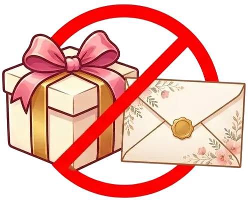 Dengan kerendahan hati dan tanpa mengurangi rasa hormat, kami memohon para tamu undangan tidak membawa kado, amplop, hadiah atau tanda kasih dalam bentuk apapun.